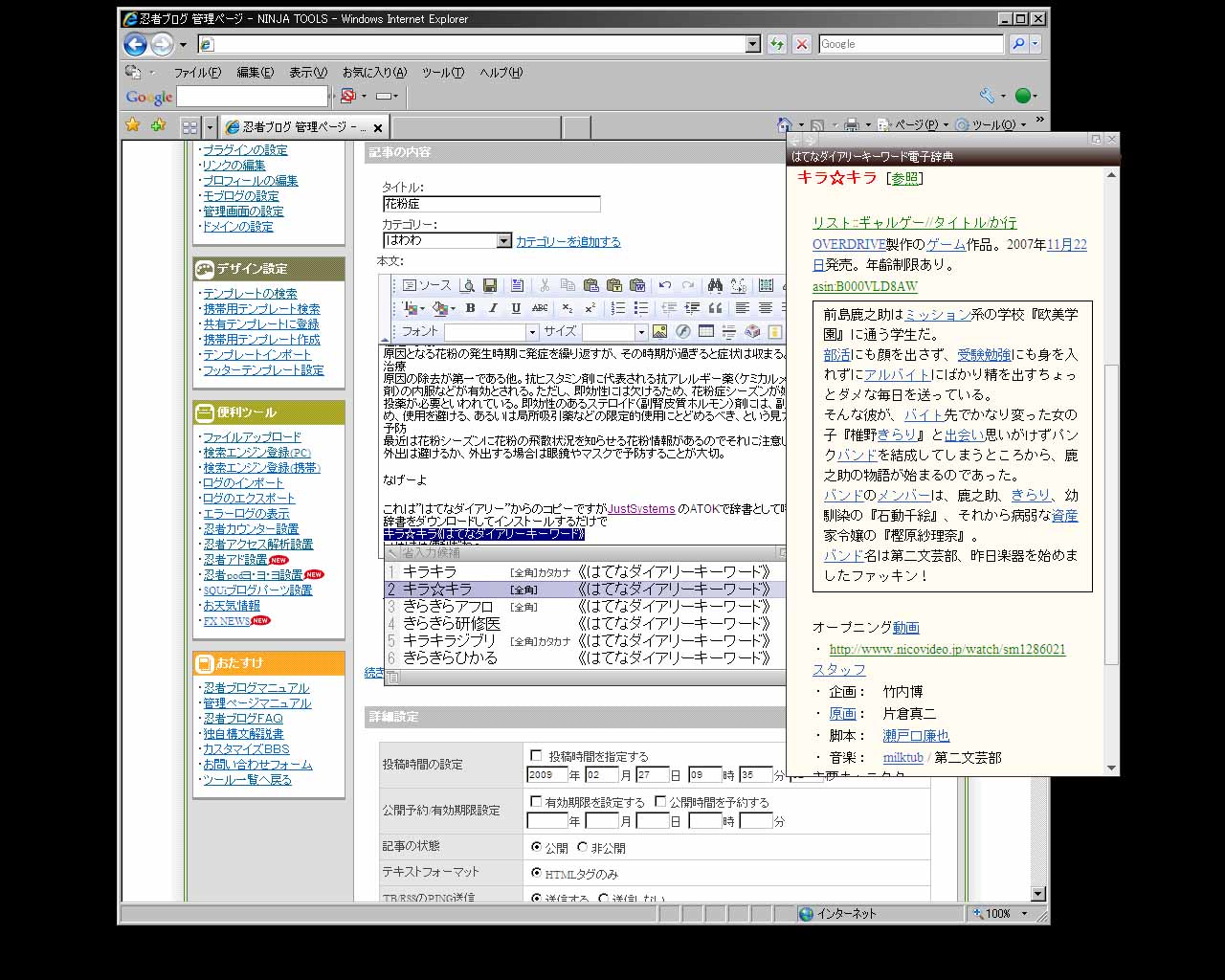 上の文章は”はてなダイアリー”からのコピーですがJustSystems のATOKで辞書としてはてなダイアリーを呼び出せる。